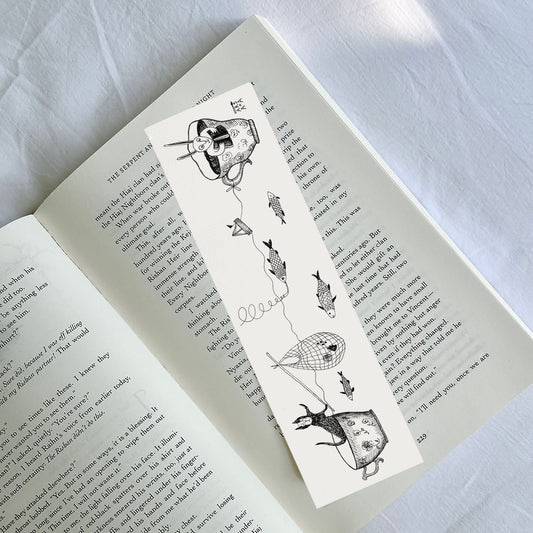 Fishing Cat Bookmark, Illustrated Literary Gift for Book Lovers