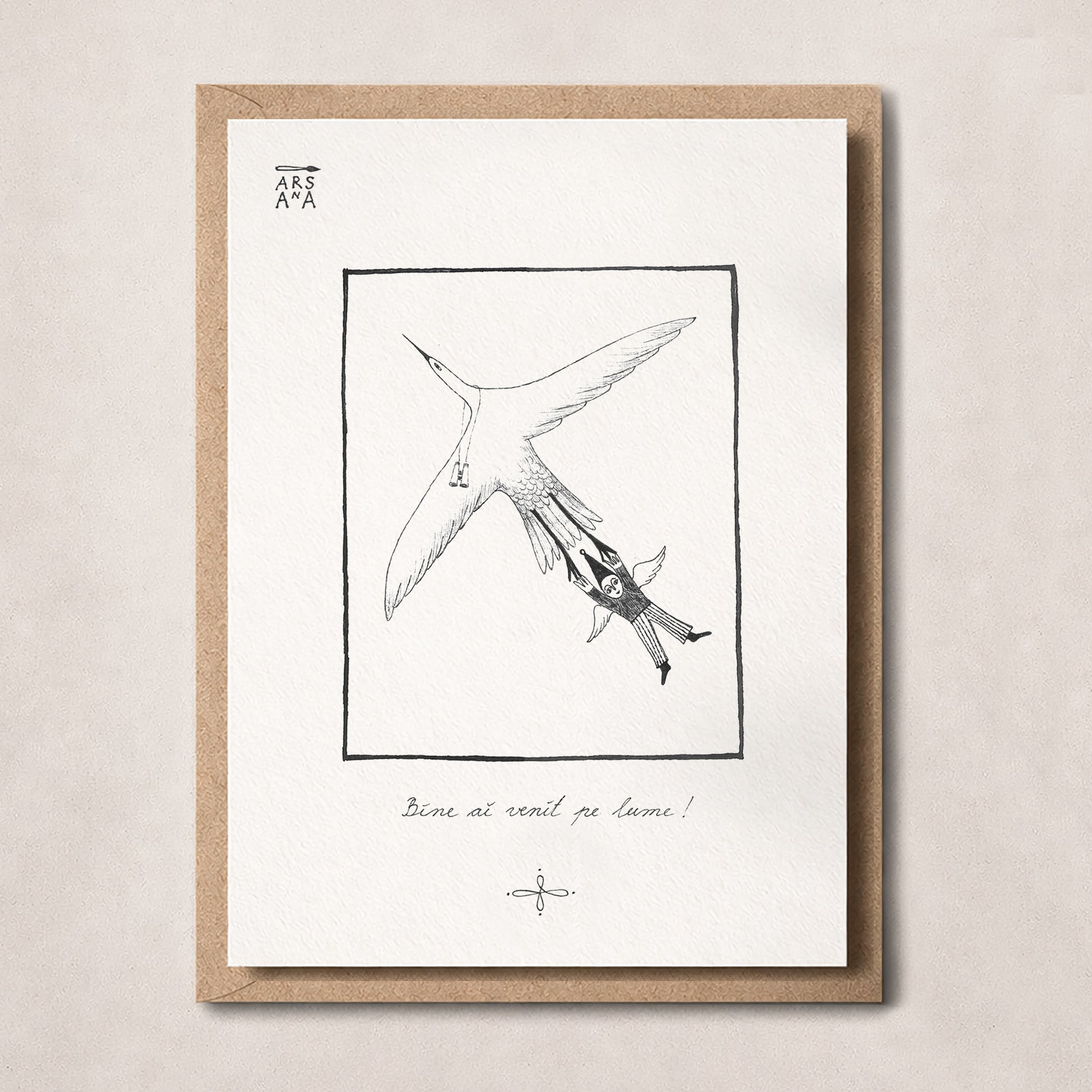Carte poștală ilustrată A6, cu desen de mână reprodus pe hârtie specială, născută din frumusețea și umorul expresiilor românești. Un obiect delicat, care poate fi dăruit, colecționat, expus sau trimis ca purtător al unui mesaj personal. Pentru prieteni dragi, pentru încurajări, pentru rămas-bunuri blânde sau pentru acele mici gesturi cu umor și gând bun. Creată în România, tipărită pe hârtie specială și completată cu un plic reciclat. Se vinde individual.