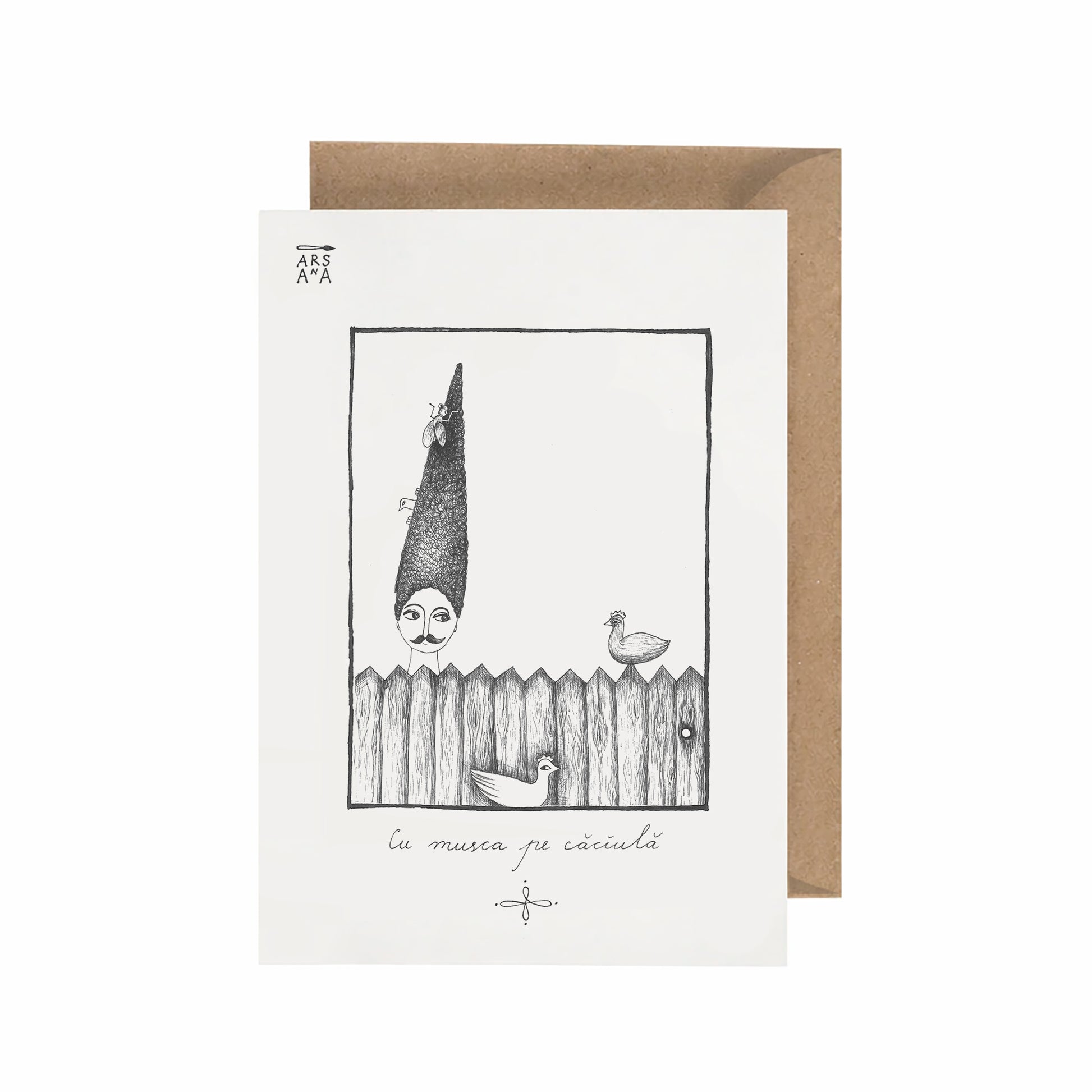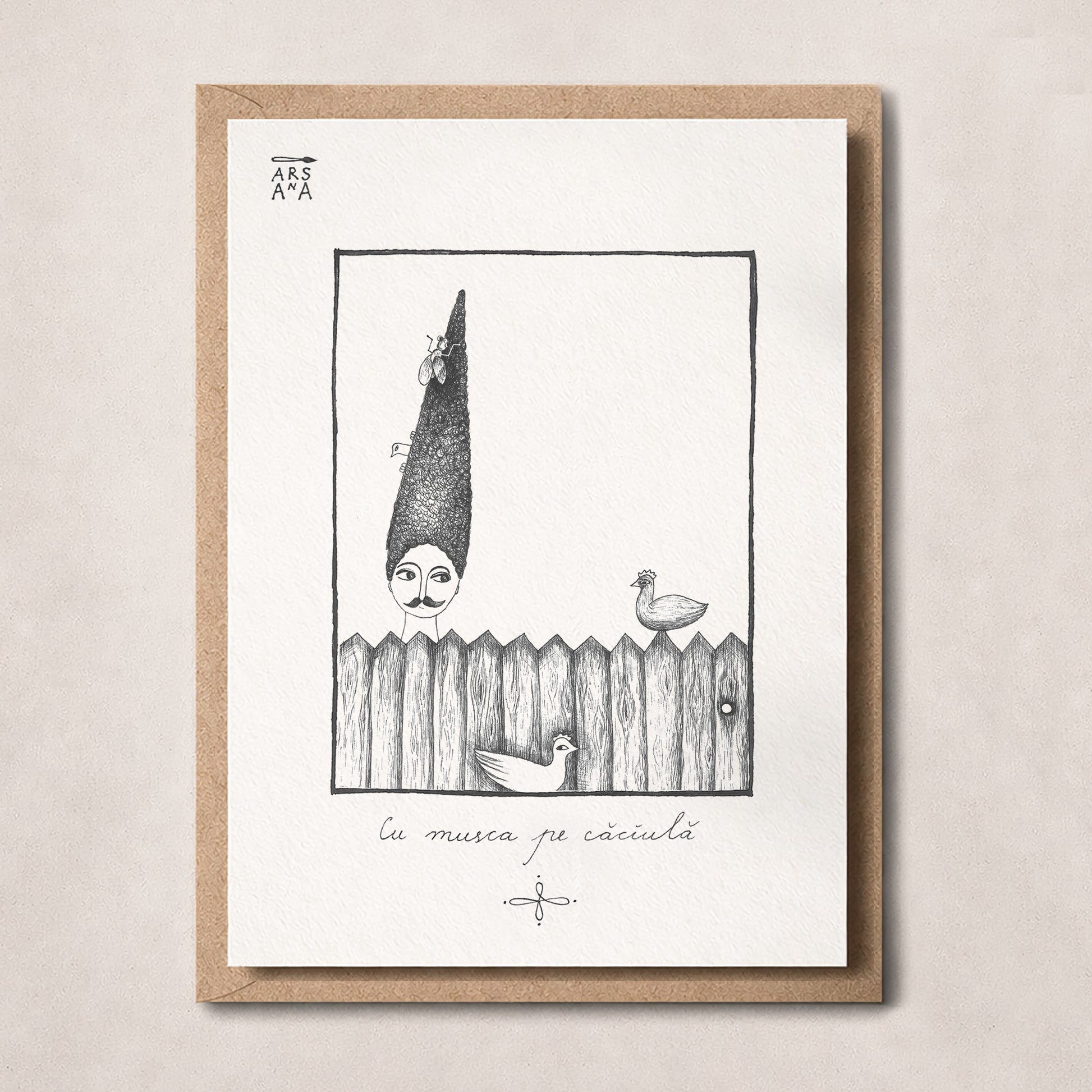 Carte poștală ilustrată A6, cu desen de mână reprodus pe hârtie specială, născută din frumusețea și umorul expresiilor românești. Un obiect delicat, care poate fi dăruit, colecționat, expus sau trimis ca purtător al unui mesaj personal. Pentru prieteni dragi, pentru încurajări, pentru rămas-bunuri blânde sau pentru acele mici gesturi cu umor și gând bun. Creată în România, tipărită pe hârtie specială și completată cu un plic reciclat. Se vinde individual.
